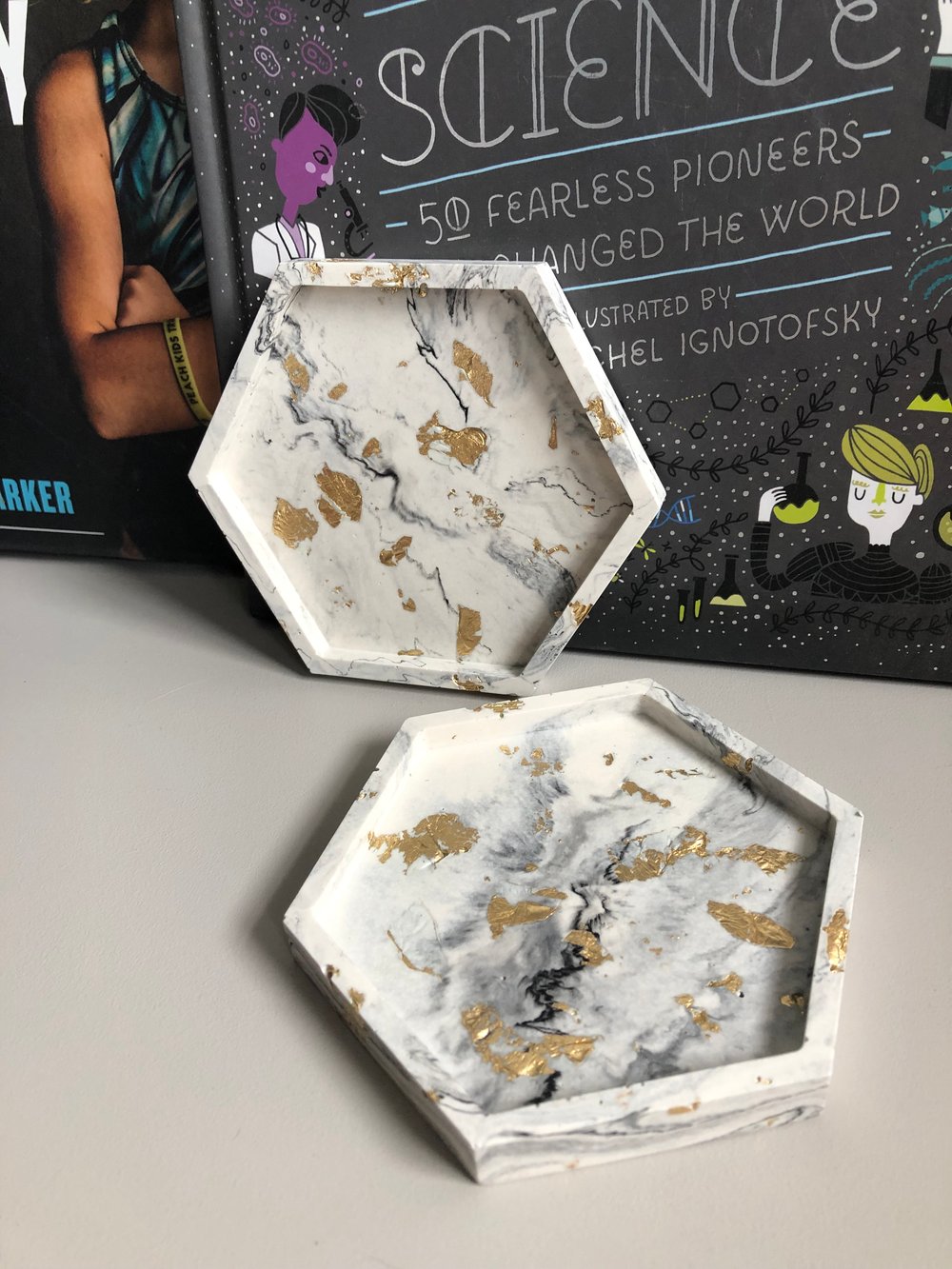 Marble With Metal Flakes Hexagon Coaster Trays - Luxe Collection